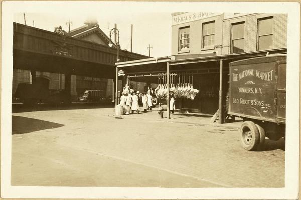 Little West 12th Street, at and adjoining the N.E. Corner of Tenth Avenue, as seen from Gansevoort Market Stand. Also shown on the west side of Eleventh Avenue, is pier No. 54, Hudson River, at the extremity of West 13th Street. October 1, 1928 P. L. Sperr.