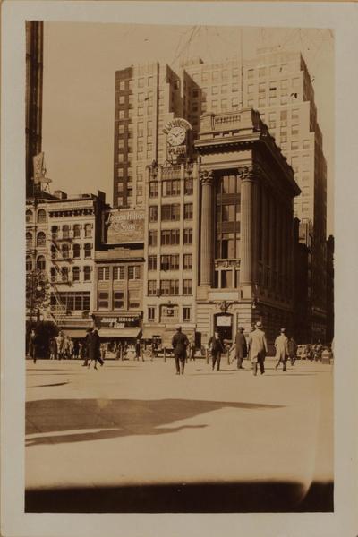 239 to 247 Broadway, west side, north from Park Place (left) to Murray Street (right) as viewed westward from City Hall Park. Partially