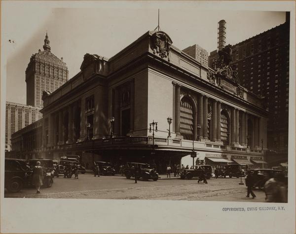 East 42nd Street at the N.E. corner of Vanderbilt Ave. Grand Central Terminal, at the northern end of lower Park Ave., from 42nd to 45th Streets; the view at the left is north on the east side of Vanderbilt Ave. The view is nearly the same as that of the old station taken about